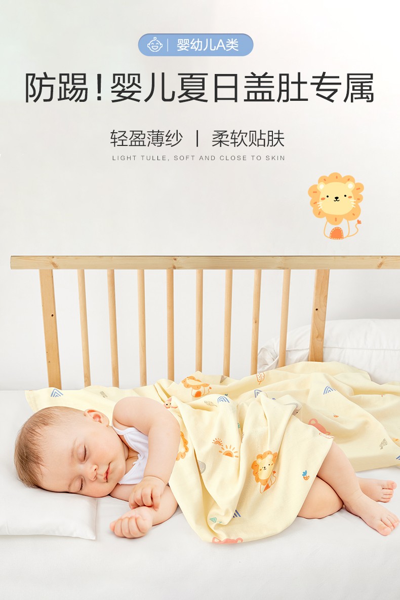 Beyond Kids Home Textile Baby Blanket Thin Blanket Summer Cotton Gauze Blanket Thin Children's Cartoon Neonatal Blanket Baby Kindergarten Double Layer Gauze Blanket - Lion Kingdom 120 * 120cm