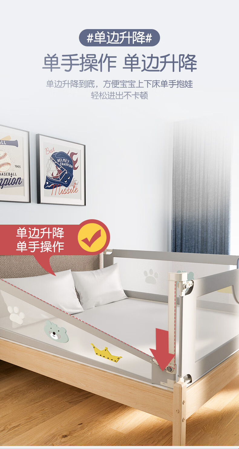 Lunabed rail - gray 1.5 meters LUNASTORY South Korea Baby Cribsafety Baby Fall Protection Fence Safety Bed Border Fall Protection Fence Happy Bear 1.5 meters [Market Quotation Price Evaluation]-
