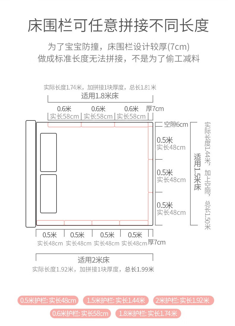 Shennadu bed rail baby safety bedside bed rail side baffle baby bed side safety fence baby anti fall gray calf - increased by 38cm 1m bed rail 0.5m * 2 [Image price brand quotation]-