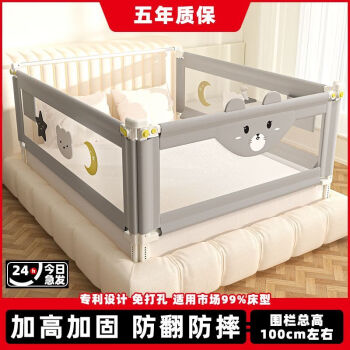 Good child's non punching bed, baby's anti falling bed, bed sidebar, baby's anti falling bed, lifting and lowering one side, three sides without punching [integrated return design] Grizzly Bear 1.8+2+2 meters [three side picture drying bed head pole]...
