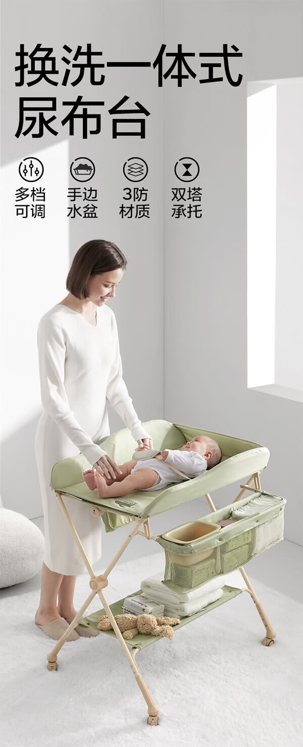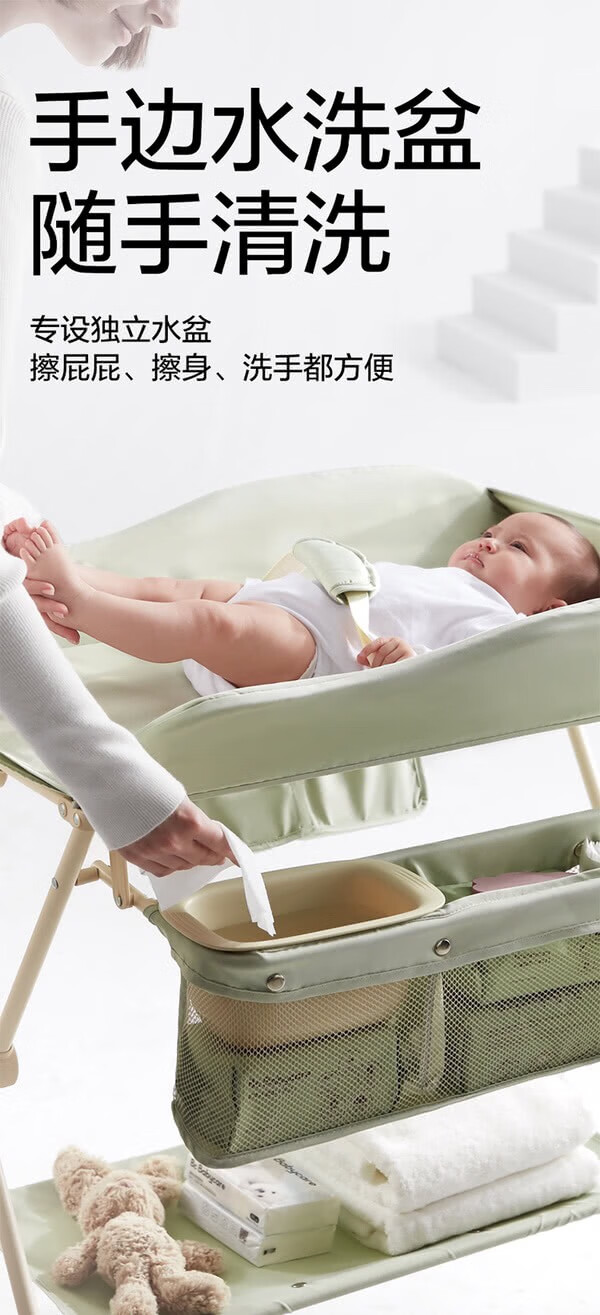 Babycarechanging table, baby changing station, multifunctional shower table, diaper changing, movable and portable [net pocket x2+small water basin], warm green [image price, brand quotation]-