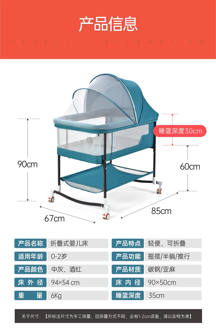 HAIZIJIABaby Crib Baby Rocking Crib Variable changing station changing tablePortable Eco friendly Crib Side Bed Mobile Conve